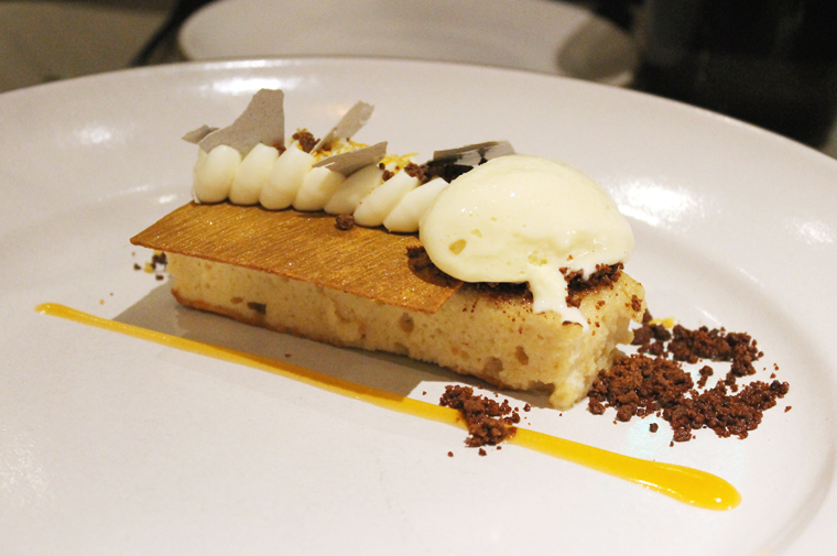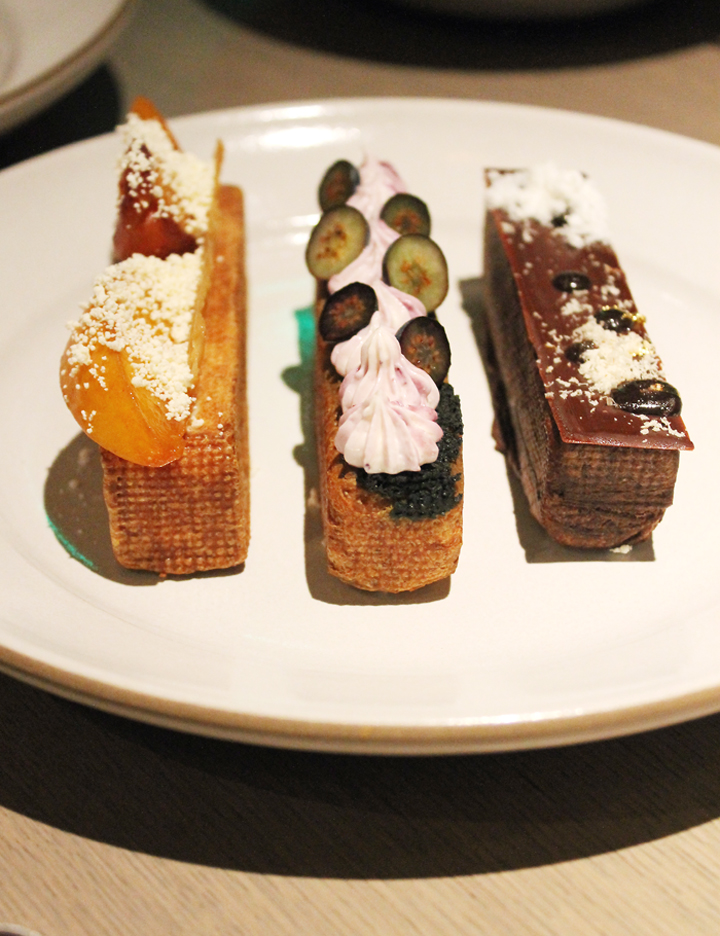 The “Classic” dessert is surely going to become a signature. Who can resist a plate of not one, not two, but three dainty eclairs, each one different? They are beautiful to behold: honey bourbon peach, blueberry cheesecake, and chocolate almond joy. They are also surprisingly light and airy, like crisp troughs holding fillings that are indulgent but none too sweet.