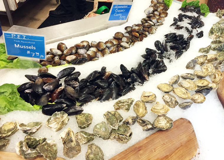 The fish shop adheres to the Monterey Bay Aquarium’s Seafood Watch Guide, selling only sustainable, seasonal fish and locally made caviars, as well as prepared foods such as fish sandwiches, smoked trout clam chowder, and rock shrimp salad. Fresh fish arrives every single day. Not surprisingly, when it’s in season, fresh salmon is the biggest seller.