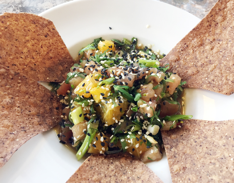 Albacore poke ($9) is seasoned with sesame oil, sesame seeds and soy sauce, and tossed with crunchy wakame seaweed.