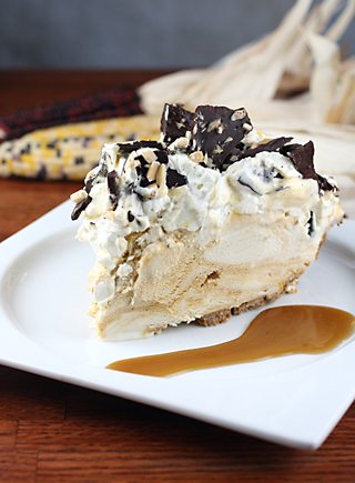 And: Pumpkin Swirl Ice-Cream Pie with Chocolate-Almond Bark and Toffee Sauce