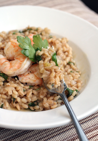 More Risotto Recipes: Barley Risotto with Thyme Roasted Shrimp