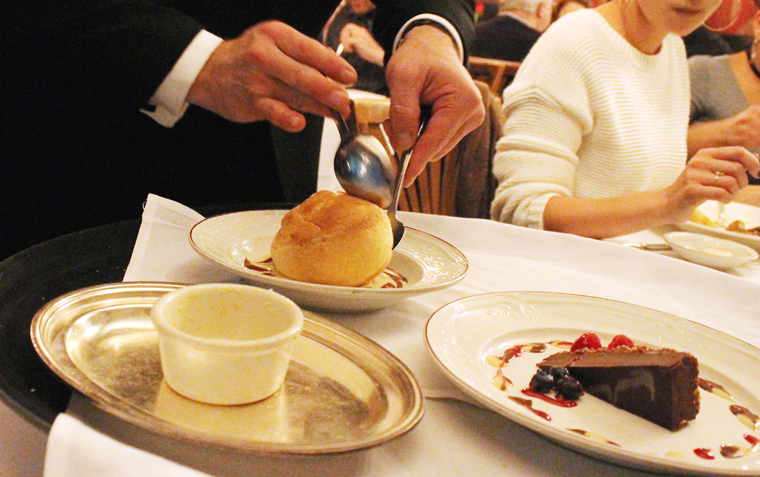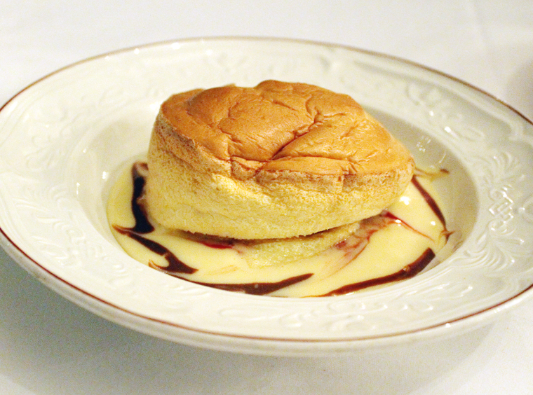The other dish that La Foret is famed for? A Grand Marnier souffle that is served in a distinctive manner. It’s unmolded from its ramekin at the table, then placed on a dish with a pool of creme anglaise.