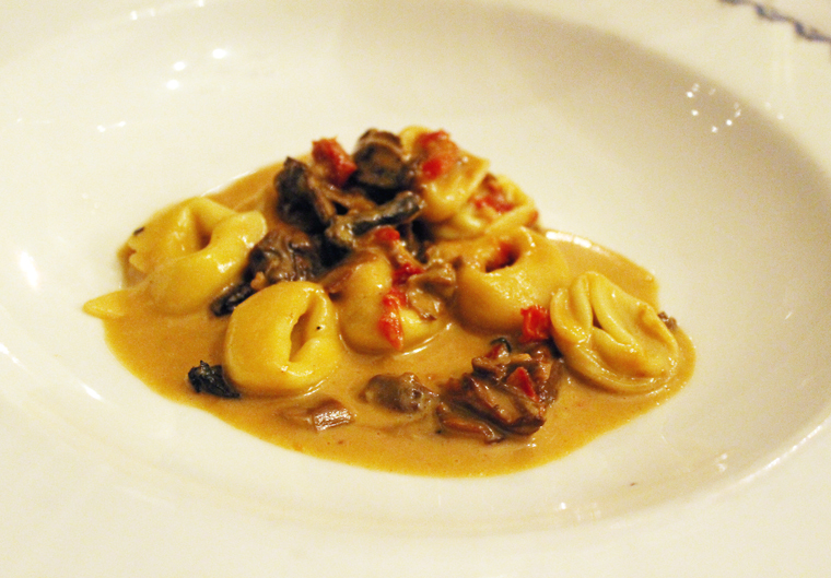 Tortellini La Foret are stuffed with ricotta and Parmesan, then finished with a porcini-tomato sauce. There’s a peppery kick on the finish. The restaurant makes its own black garlic, and here it’s combined with a little bit of honey to add a floral, slightly sweet, molasses-like accent.