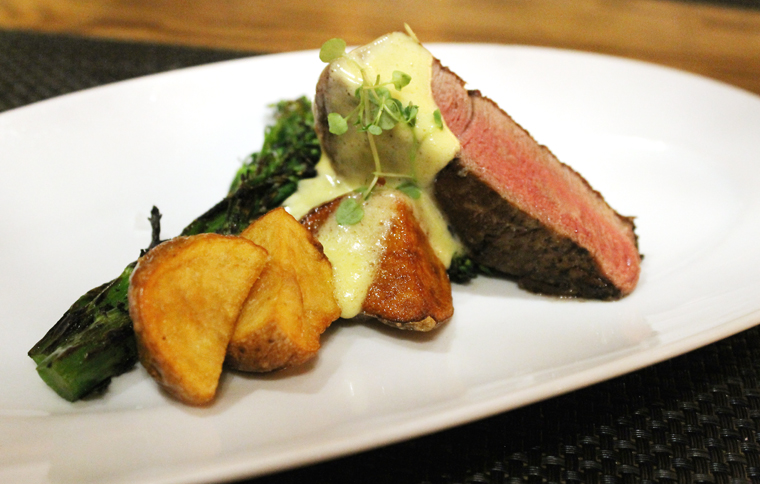 Then comes 28-day aged Rancho Alena fillet with potatoes fermented in salt water to tighten their texture and heighten their flavor. The beef, served with charred broccolini and bernaise sauce, has a concentrated beefy flavor that just fills your mouth completely.