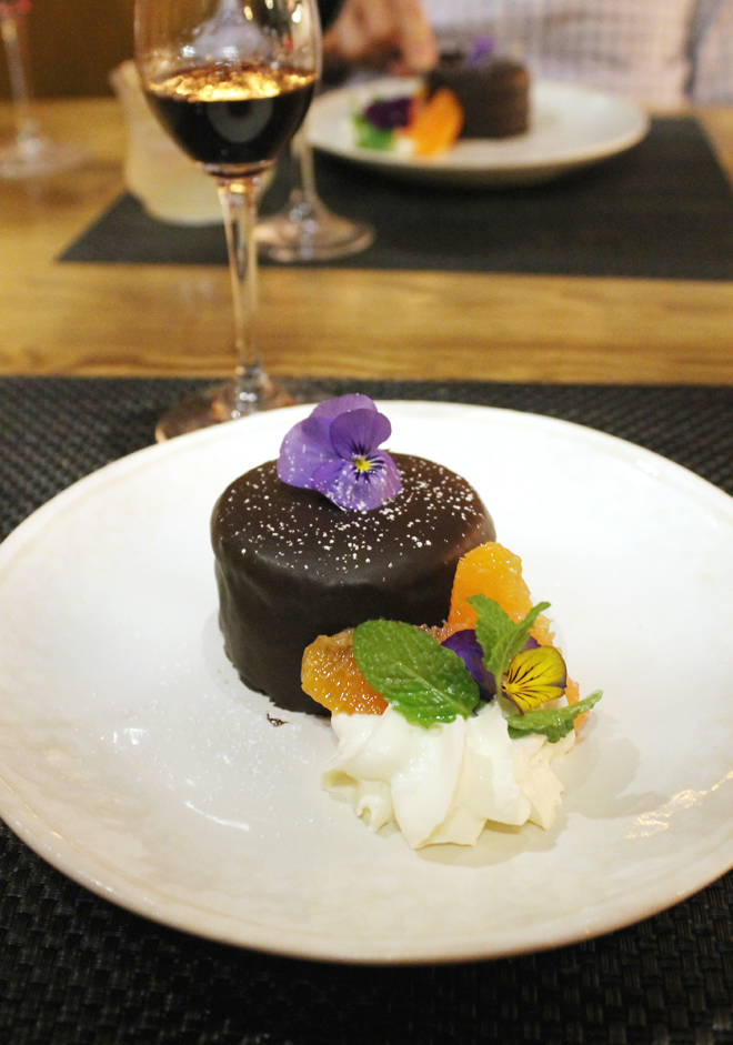 Dinner ends with passion fruit pate de fruits and mint chocolate truffles sprinkled with sea salt.
