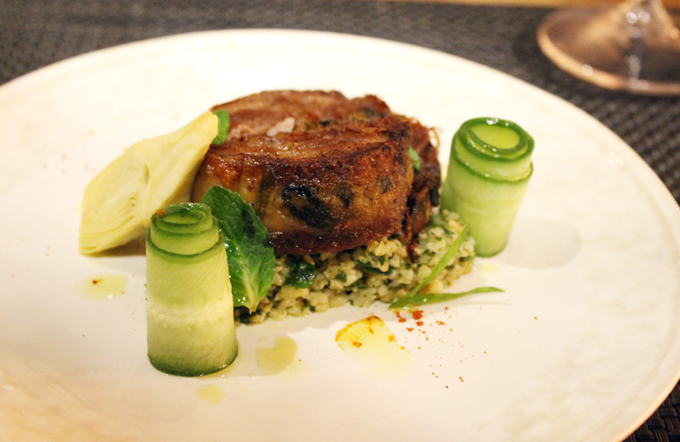 Lamb neck is one of those prized lesser cuts that you don’t often see on menus. Braised properly, as it was done here, the meat is as tender as any short ribs with bold lamb-iness. Freekeh tabbouleh is more substantial and nuttier tasting than typical bulgar. Preserved lemon yogurt brings everything together.
