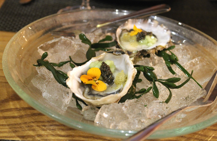 It’s about 10 courses, and starts with a rapid succession of small bites following a bracing amuse of oysters on the half shell with paddlefish caviar.