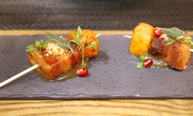 Pork belly gets paired with butternut squash, apple butter, pomegranate seeds and finely chopped hazelnuts. Crisp, unctuous and sticky, it reminded me surprisingly of Chinese pressed duck in texture and nutty goodness.