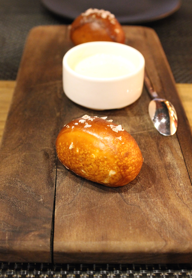 I can never resist house-made pretzels. Here, they are done as little nubbins or bites, and served whimsically with “Cheese Whiz,” a fondue-like crock of white cheese sauce. A couple orders of these with a cocktail would be an ideal way to unwind after a hard day at work.