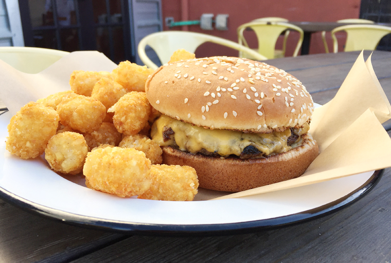 The OK Cheeseburger ($14.50) with tater tots ($2 extra) is a thin patty, cooked more well done than my husband would have preferred, with a cap of melty cheddar on top. The tots are addictive – their crisp exterior giving way to an almost custardy interior.