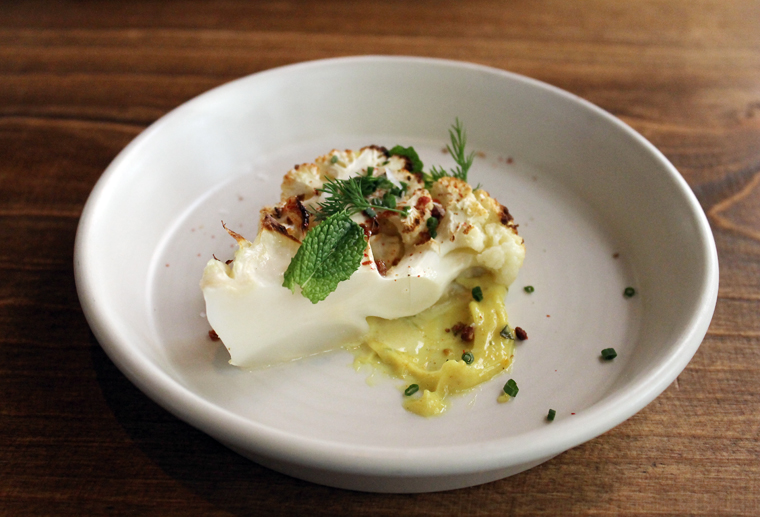 It’s food that’s vibrant and full of flavor. Take roasted cauliflower ($8). Its natural sweetness comes out from the high-heat roasting. A grilled lemon vinaigrette and dynamite creamy curry-like vadouvan aioli give it verve.