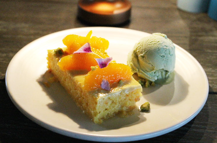 For dessert, we shared the citrus and olive oil cake ($10). It was like a tres leches cake in texture, with the syrup from the mandarin compote on top soaking into the sponge. Light and just barely sweet with a scoop of refreshing minty pistachio ice cream, it’s a good option if you want to end dinner on a not-so-heavy note. The last little bites are dark chocolate caramels presented on a silver tray.