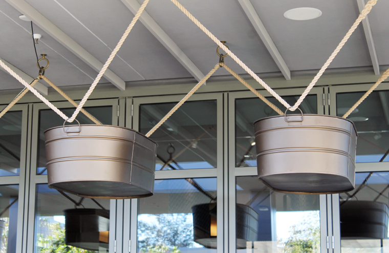 Step inside the just opened hotel, and you are sure to get whiplash. That’s because the upscale yet whimsical decor by Colum McCartan of New York’s McCartan, Inc. will have you looking every which way. Everywhere you turn, there are eye-catching, fun touches such as a cart full of luggage turned into a planter and rakes leaning against doorways that are actually light fixtures. Just when you think you’ve spotted every surprise, you discover yet another one.