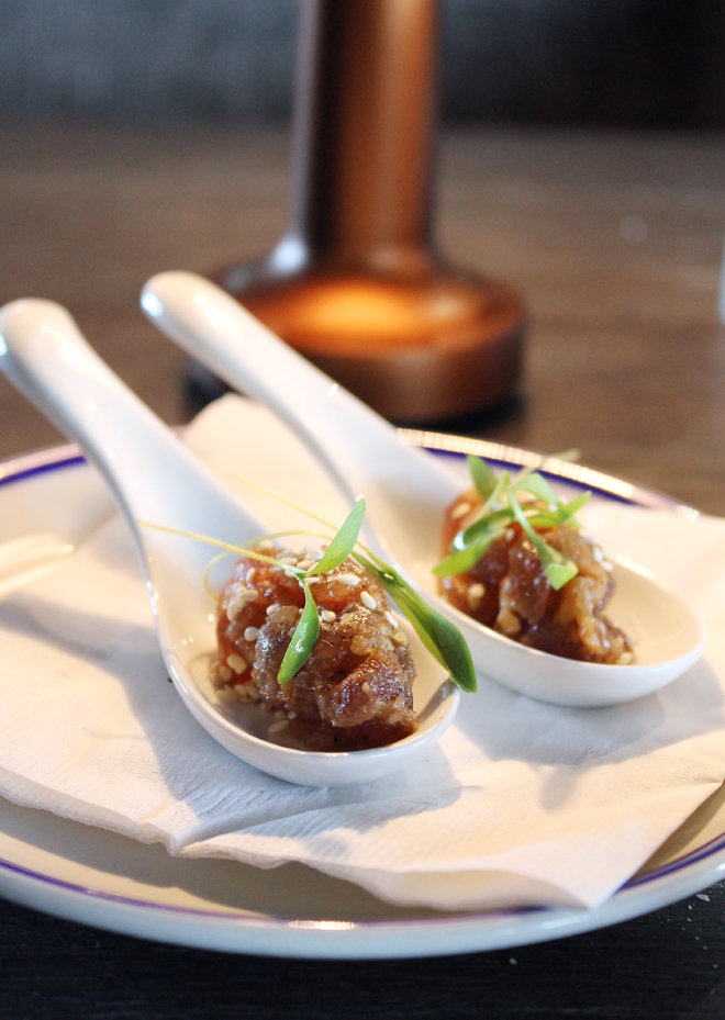 An amuse of tuna tartare mounded with almonds and dates was a perfect way to get into the Mediterranean spirit.