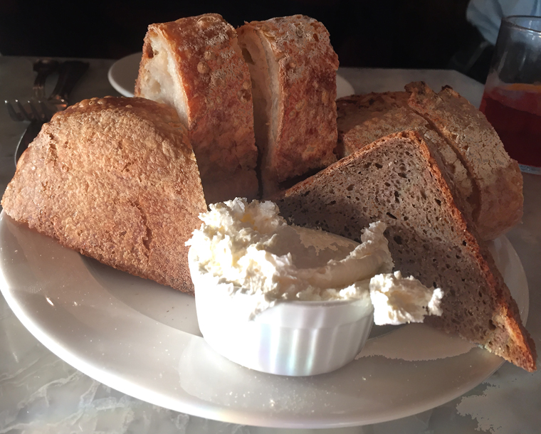 An order of bread ($5) from Seattle’s Sea Wolf bakery brings a plate brimming with slices of crusty sourdough and earthy rye with soft, whipped butter to smear on.