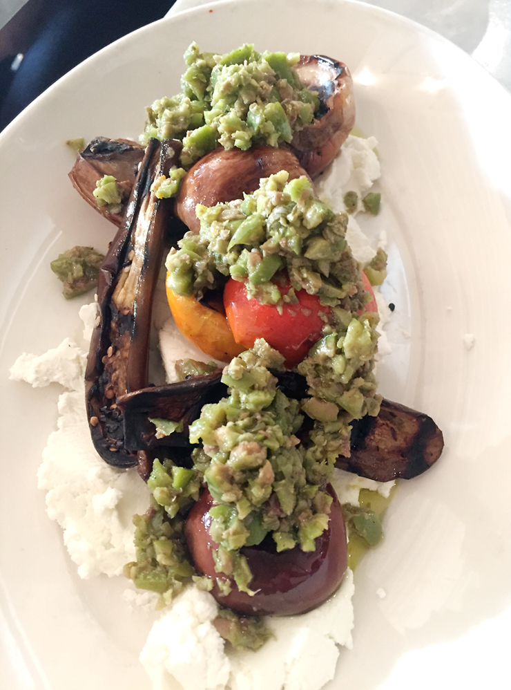 The bread is a great accompaniment to grilled eggplant ($12) that’s arranged prettily on an ample bed of chevre, then topped with olive tapenade. There’s plenty of the creamy goat cheese, so slather it on the bread for a real treat. The plate features three different types of eggplant that get a nice smoky flavor from the grill. However, a couple of pieces could have used more cooking, as they were still hard, unfortunately.