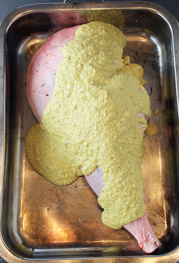 His “Roast Leg of Lamb” marinades in that creamy, unctuous sauce tinged the color of daffodils for a full day before being slid into the oven.