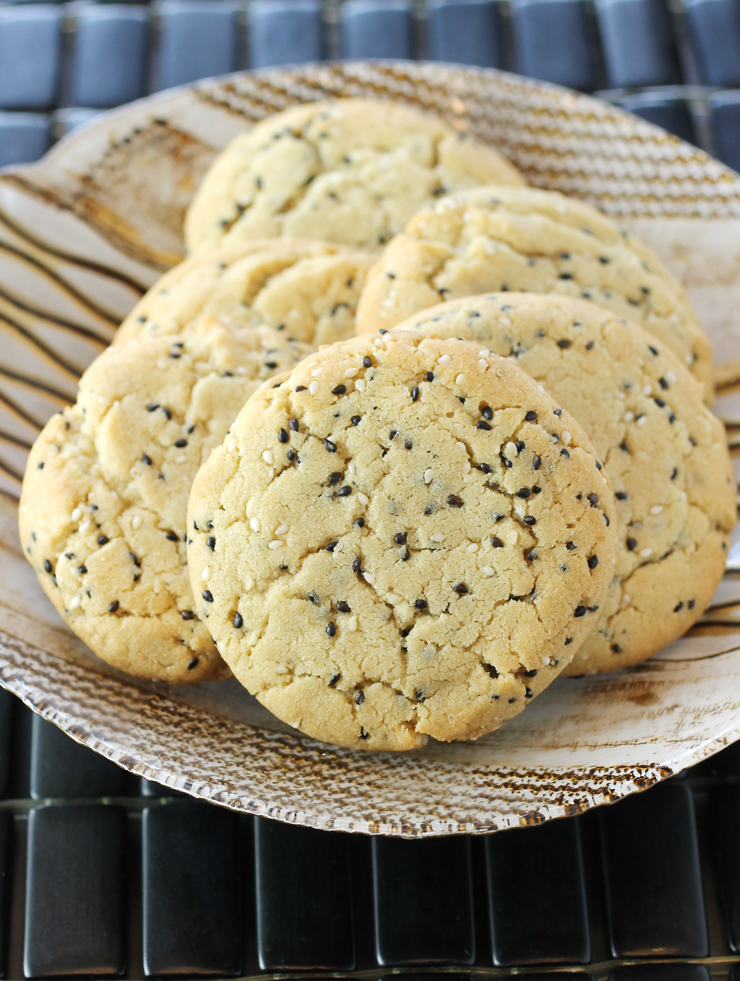 Think of them almost like peanut butter cookies but with tahini (roasted, ground sesame seed paste) instead. The tahini provides a more elegant, refined nuttiness that doesn’t hit you over the head with a hammer like rough and tumble peanut butter does.