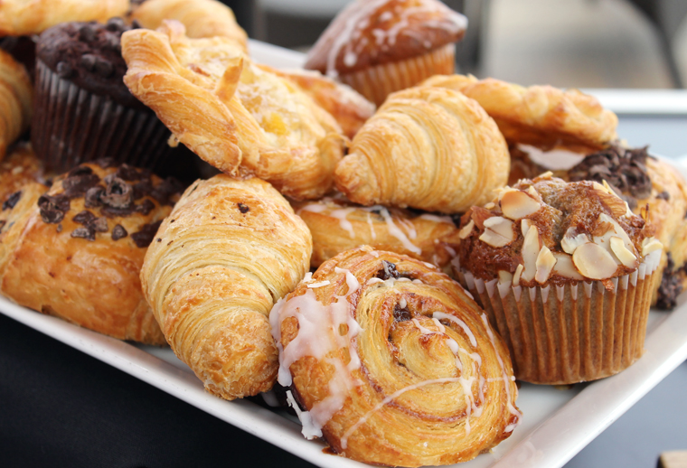 Walk a few feet over to the buffet area to help yourself to everything from more pastries (muffins, croissants, and danishes) to several salads including a fregola one full of artichokes and olives. There’s bagels with smoked salmon and all the fixings. The fresh fruit bowl holds a nice selection of blackberries, raspberries, blueberries and melon to which you can add some Greek yogurt, as well as coconut and chia seed granola.