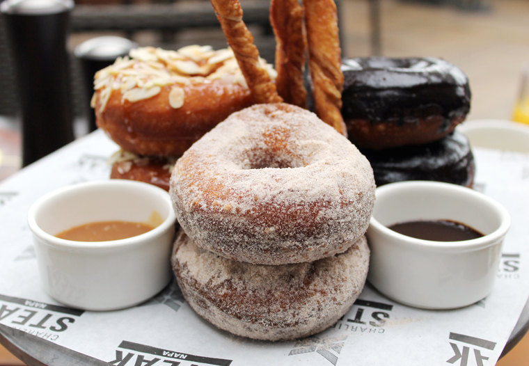 You get a choice of starters for the table included in the price: a charcuterie and cheese platter or a Dougnut Wheel, a cake stand loaded with a half dozen doughnuts and three dipping sauces. Those who know me will know I went with the latter with no hesitation.