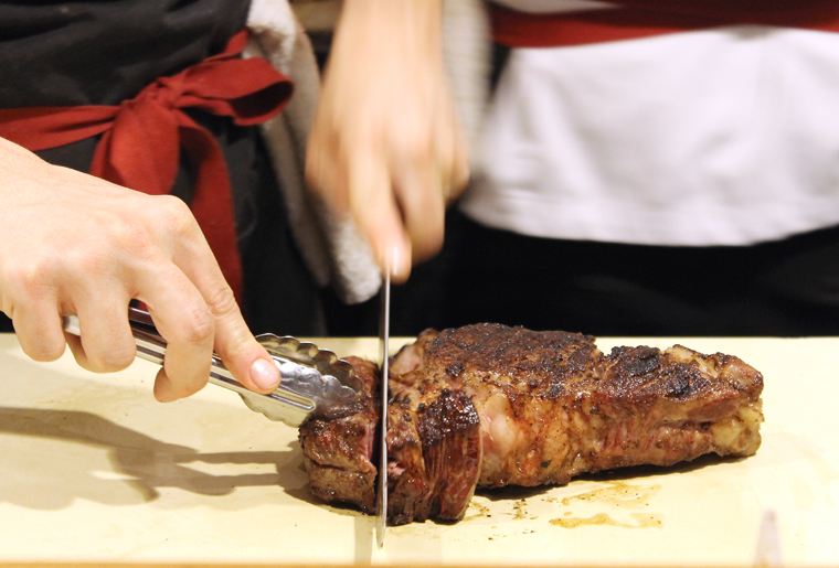 Like at a sushi bar, you can chat with the chef and the cooks behind the grilling counter. One of the most hilarious moments came at the end of the meal, where one cook, who had been grilling and slicing one behemoth steak after another in front of us, revealed that he’s actually vegan (though, he does taste everything for his job).