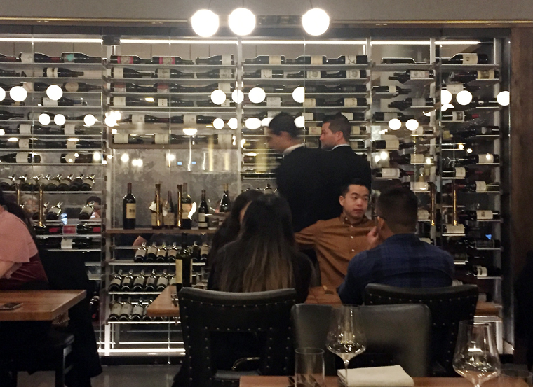 The wine program is phenomenal, too. The horizontal bottles are displayed artfully on the back wall of the dining room. Every one of the 100+ wines is available by the glass, too, which gives you an opportunity to try vintages you may never have had before.