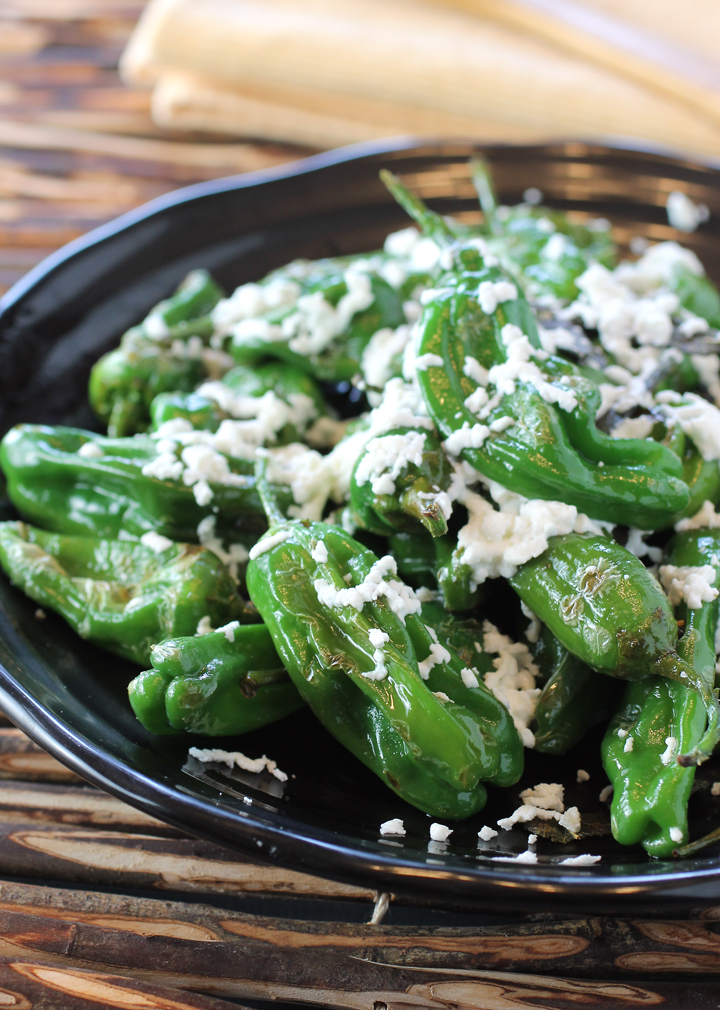 Summer’s Finger-Food: Charred Padron Peppers with Goat Cheese and Sage