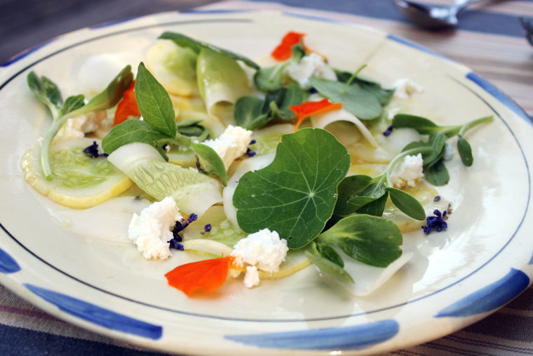 There are now seven types of oregano, three types of mint, Japanese honeysuckle, hibiscus, Maldovian dragon balm, yerba mate, tomatillos, purple snap peas, quince, and a wild plum tree. There are also horseradish leaves to give an explosive bite to crudo, lilac flowers to make vinegar, fresh fenugreek for accenting curry salad, and sunflowers, whose little buds taste like artichokes when roasted.