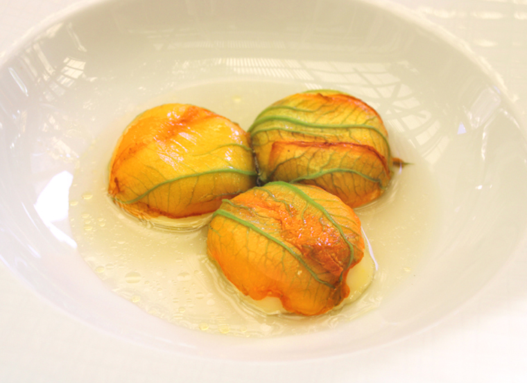 Beautiful presentations continue with the ricotta gnudi ($20), individually wrapped in the green and orange of squash blossoms like a special gift from nature. A clear broth is poured over at the table, a consomme that surprises with its deep taste of nutty Parmesan. The gnudi, themselves, are soft, supple, and nearly souffle-like.