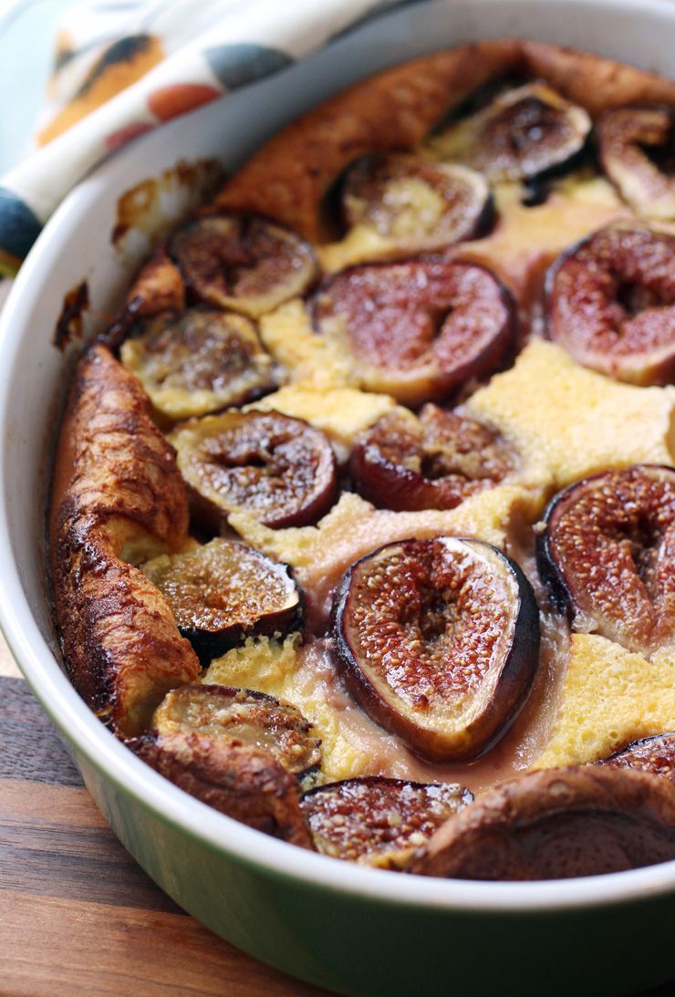 This dish shows off the beauty of the figs, as halves are arrayed in a baking dish, cut-side up, before a pancake-like batter is poured in.