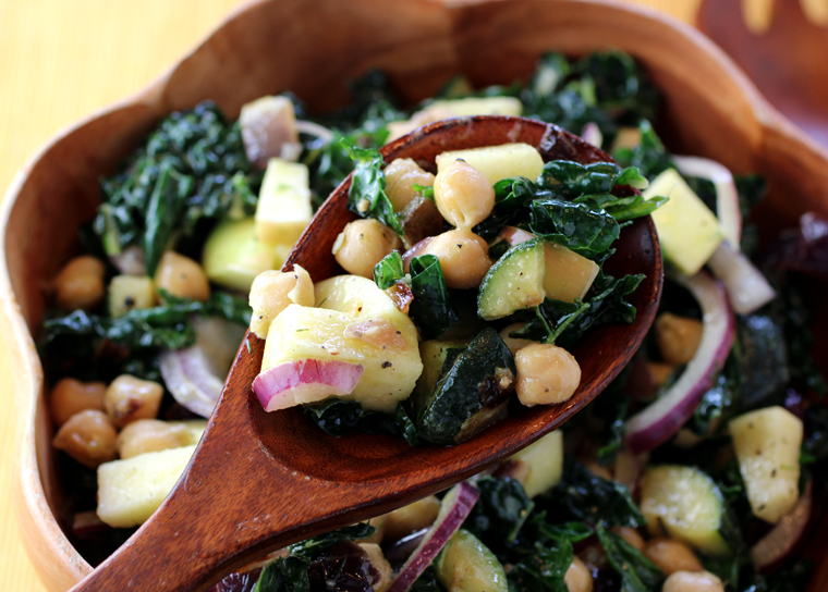 Apple-Chickpea Kale Salad with Orange-Mustard-Dill Dressing
