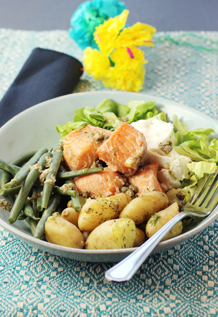 A simple dressing of orange juice, lemon juice, mustard, dill and olive oil gets spooned over it all. The recipe didn’t include salt and pepper in the dressing, but I added it, because I think it benefited from just a pinch of each. If you end up with leftover dressing as I did, just store in the fridge, and use to dress other salads or even grilled seafood.