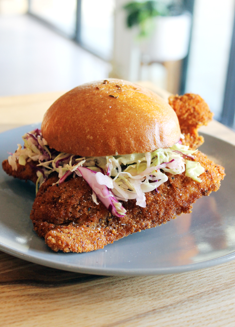 It’s open seven days a week with weekends packed. On a midweek lunch-hour, though, it’s easy to find a seat, either outside on the small patio with wine-barrel tables or inside at artsy, live-edged wood tables. On a nice day, they keep the doors to the patio wide open, so you can easily snag a seat at a table inside that practically feels like outside with the feel of the coastal breezes.