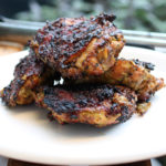 The directions call for grilling the pieces skin-side down the entire time. My husband, the grill meister in the house, found this a little tricky because many of the pieces began to char considerably long before they were cooked through. As a result, he ended up flipping the chicken pieces over to cook for part of the time. Feel free to do the same if you find the skin side blackening too much. Just try to keep the skin-side on the grate as long as you can, though, to prevent drying out the meat.