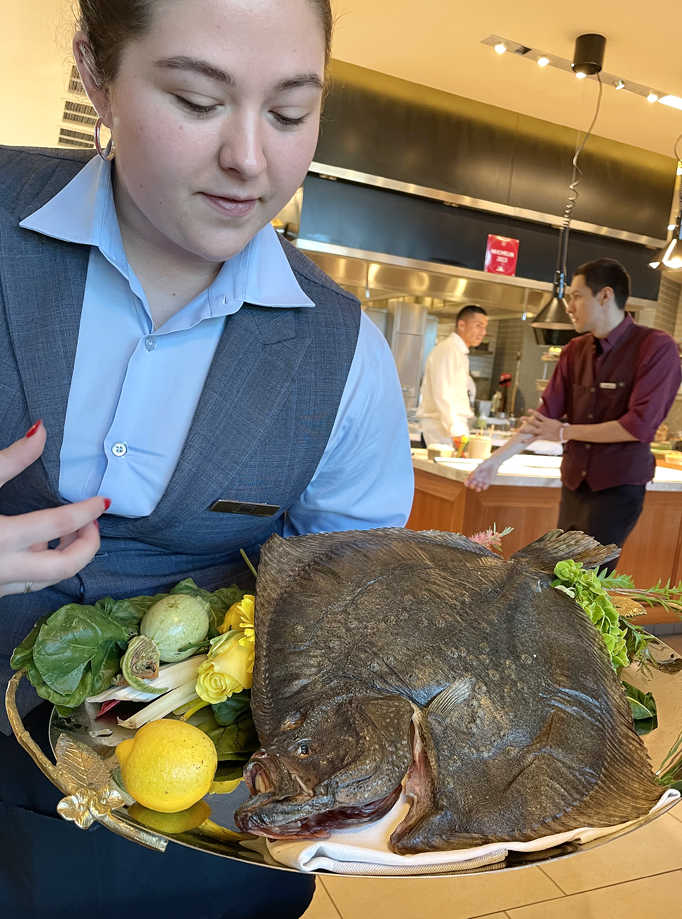 It was paired with turbot, which is showed off at the table in its entirety, as a server explainsthat it’s aged for 7 days.