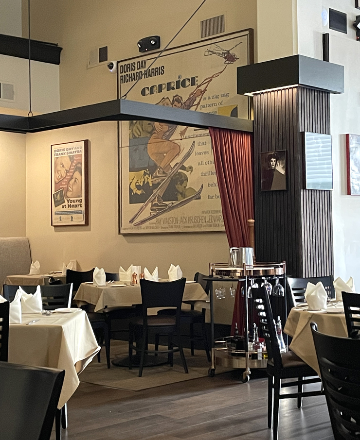 Big-band music plays over speakers in the Porterhouse dining room, that’s decorated with framed photos of actors such as Humphrey Bogart and Fred Astaire, and movie posters from classics such as “Casablanca,” all of which Ugur has been collecting for decades.