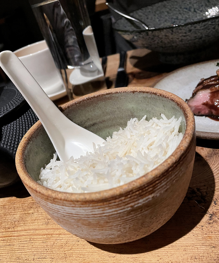 But there was still more — the breast, sliced and served separately that was so rosy and juicy. Basmati rice was served alongside, which went especially well with the creamy dhal.