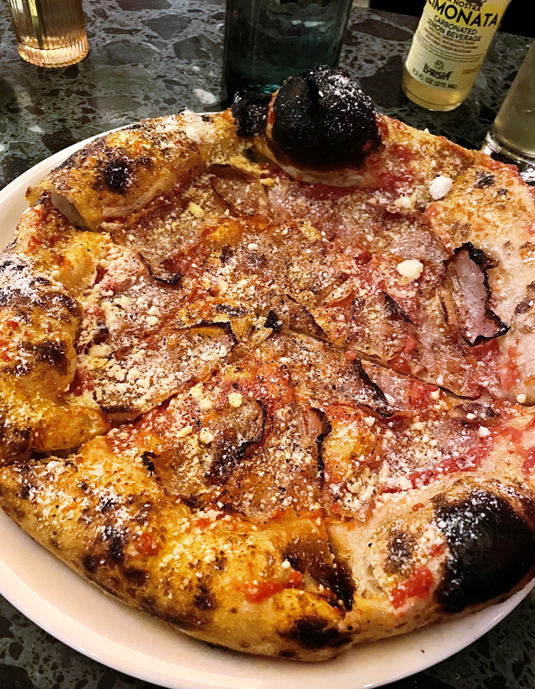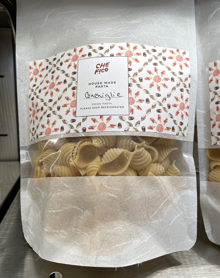 There’s a dry-age fridge to age prime rib and pork chops, 21 to 28 days; a seafood case stocked with largely local catch; packages of Che Fico coconut macaroons flavored with bright passion fruit; loaves of sourdough bread from San Francisco’s Rize Up Bakery that also get used for deli sandwiches; and cans of Bianco DiNapoli tomatoes, organically grown Northern California ones produced in conjunction with Chris Bianco, chef-founder of the legendary Pizzeria Bianco in Phoenix and Los Angeles. These are the same canned tomatoes that form the foundation of many of Che Fico’s sauces, too.