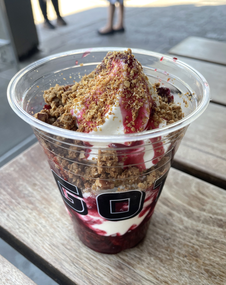 However, the cherry cobbler parfait ($8.99) was perfectly cold, creamy, and on point with Straus organic vanilla soft serve topped with syrupy, house-made Morello cherry compote and a crunchy pecan crumble.
