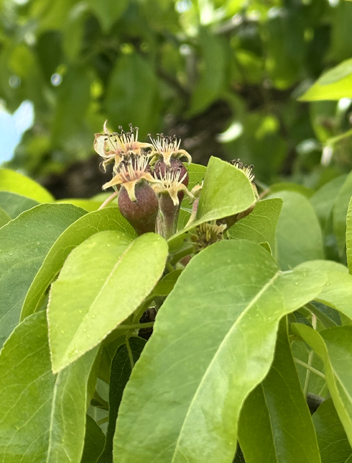 Kiyokawa walked me around the property, where blossoms were just starting to appear on Bosc, Comice, and Anjou pear trees. He also grows peaches, plums, and baby kiwi. In a nod to his wife’s heritage, he also planted Persian plums and sour cherries.