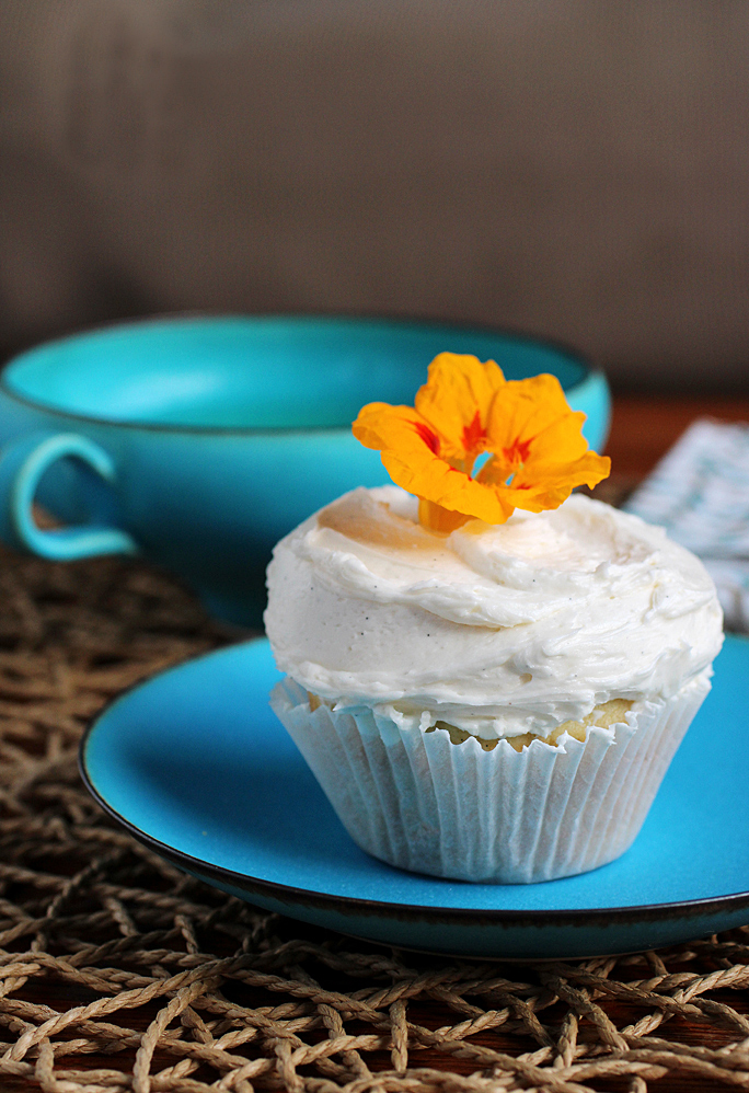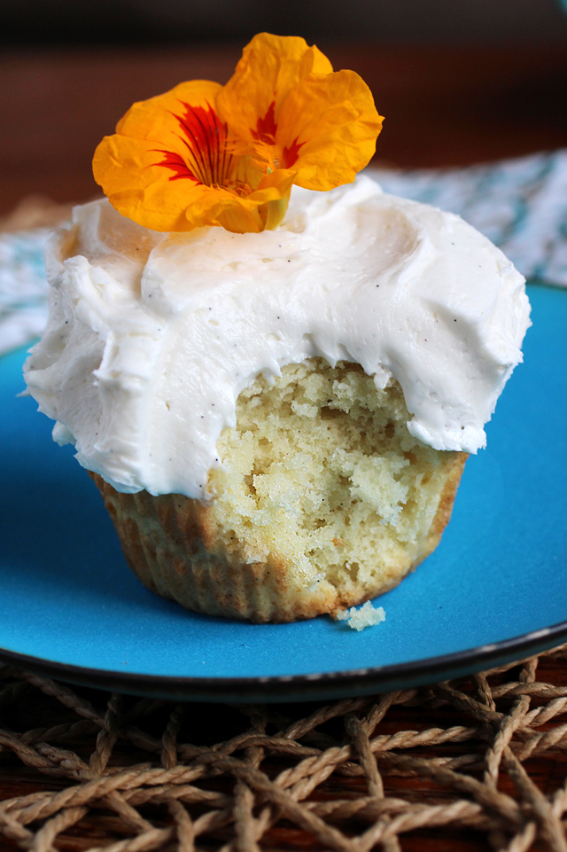 Divide the frosting among the cupcakes, using a piping bag or offset spatula to cover the tops. Serve as is or add sprinkles, sliced nuts or just-picked nasturtiums from the garden, as I did.