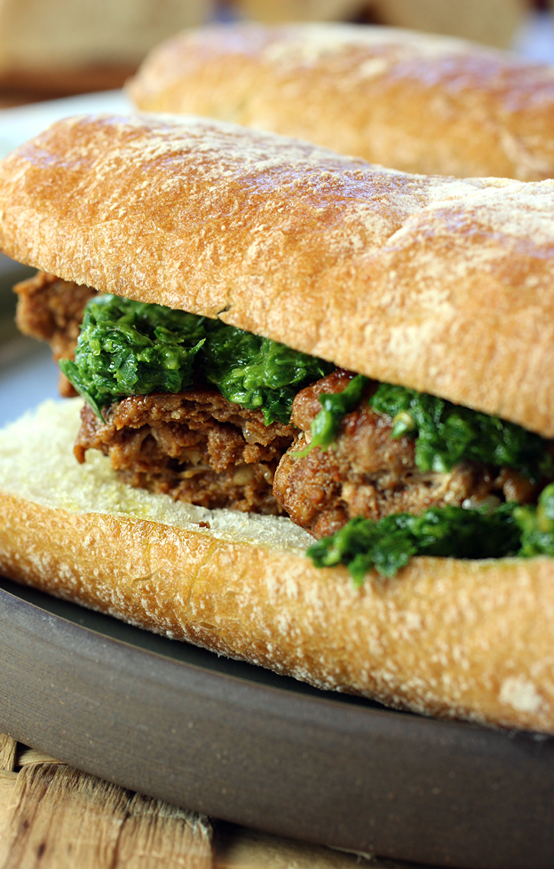 His recipe for “Choripan” is a cinch to make. Just season ground pork with garlic, tomato paste, cinnamon, cumin, cayenne, a splash of apple cider vinegar, and two types of paprika. Shape into patties, then sear on both sides in a pan. Mine took a few more minutes to cook through than the recipe stated, so I adjusted that below.
