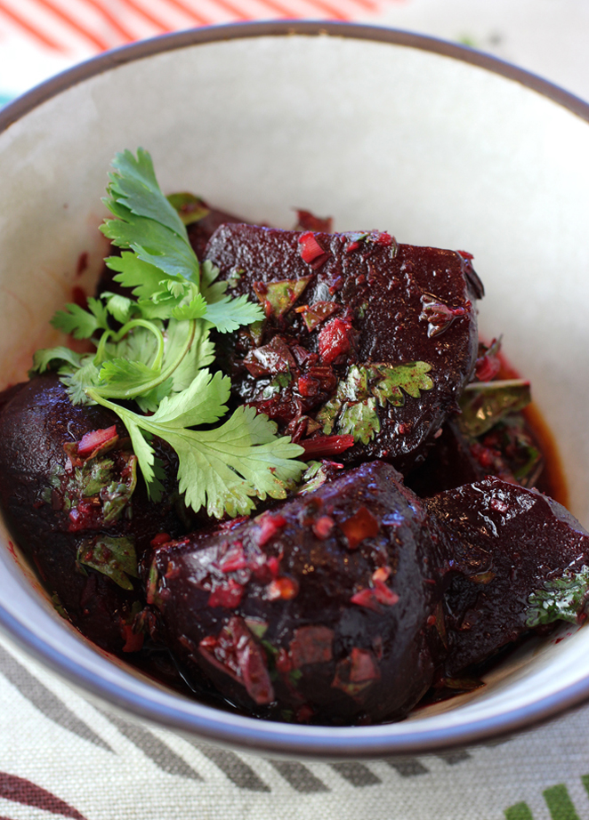 The Choi of Roasted Beets with Chili Crisp, Cilantro, and Lime
