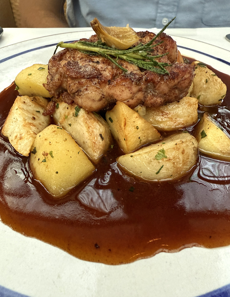 Thick and meaty tasting veal sweetbreads ($36) were napped with a deeply concentrated veal-wine jus, and came on a huge bed of turnips and potatoes.
