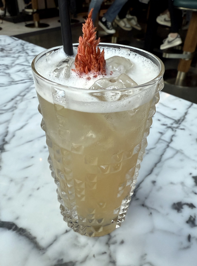 Deadlines are arguably the bane of every reporter’s existence. But then again, we probably would never get anything done without them and would watch our byline just fizzle away. Good thing The Pressroom’s Byline Fizz ($19) doesn’t conjure up nightmares like that, just breezy thoughts with its refreshing fizzy, tart blend of strawberry-infused tequila reposado, lemon, honey, and a float of sparkling wine.