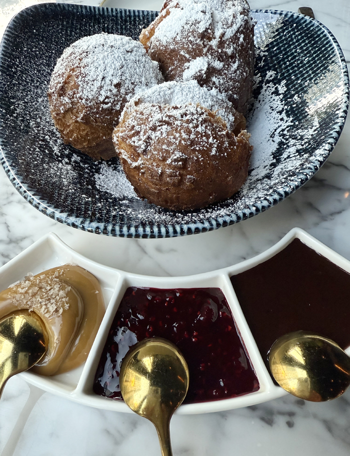 Dunk them in the accompanying chocolate, dulce de leche, and raspberry sauces one at a time or all at once, and you’ll not leave happier.