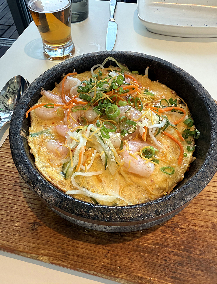 The chaufa aeropuerto ($39) combines delightful elements of Chinese, Japanese, and Korean influences in one thoroughly comforting dish. Fried rice arrives at the table in a hot stone pot that’s draped with a shrimp omelet. The server mixes everything together in front of you, so you get a little bit of everything in one bite: fluffy and crispy grains, eggy shards, plump shrimp, mushrooms, and small pieces of Wagyu skirt steak.