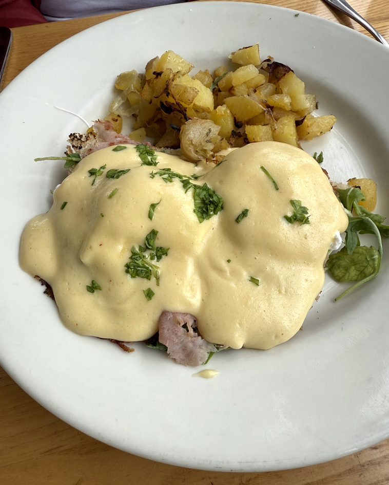 The MacBenedict ($21) is classic with two poached eggs atop sourdough toast with Niman Ranch ham — all blanketed in a thick, creamy hollandaise dotted with chives.