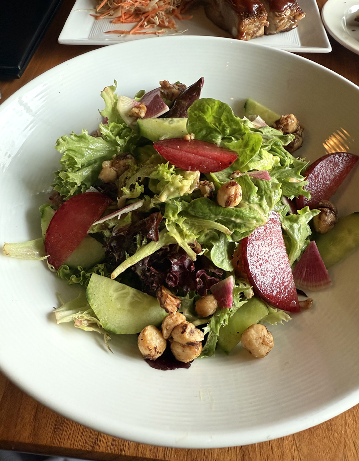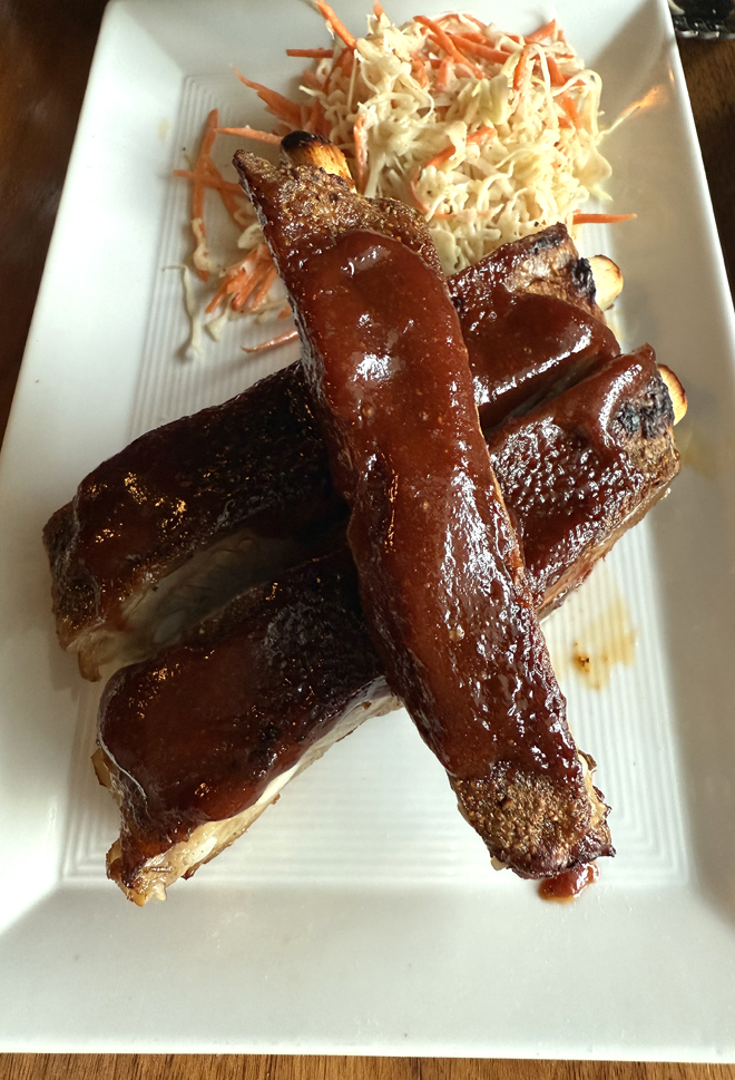 We also shared an appetizer of plum-glazed barbecue St. Louis ribs ($17) that came with a side of finely shredded cabbage slaw tossed in a buttermilk dressing. The ribs were tender with just enough chew in a sweet-tangy, sticky sauce.