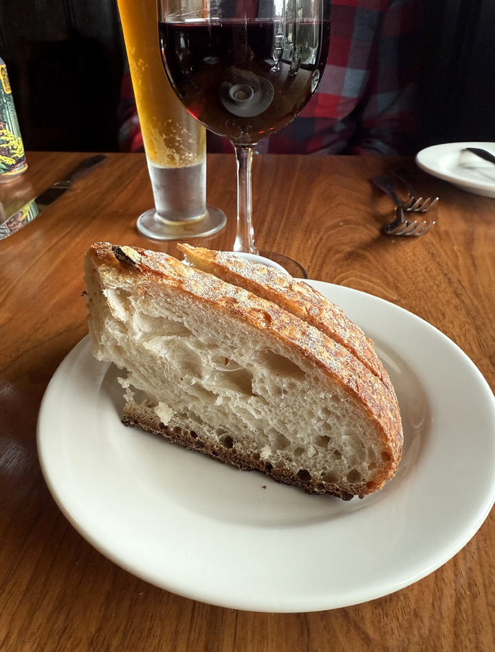 The dining room is warm and rustic with a huge stone fireplace. Settle in, and enjoy the sourdough bread as you peruse the menu. The portions are sizeable for the price, too.